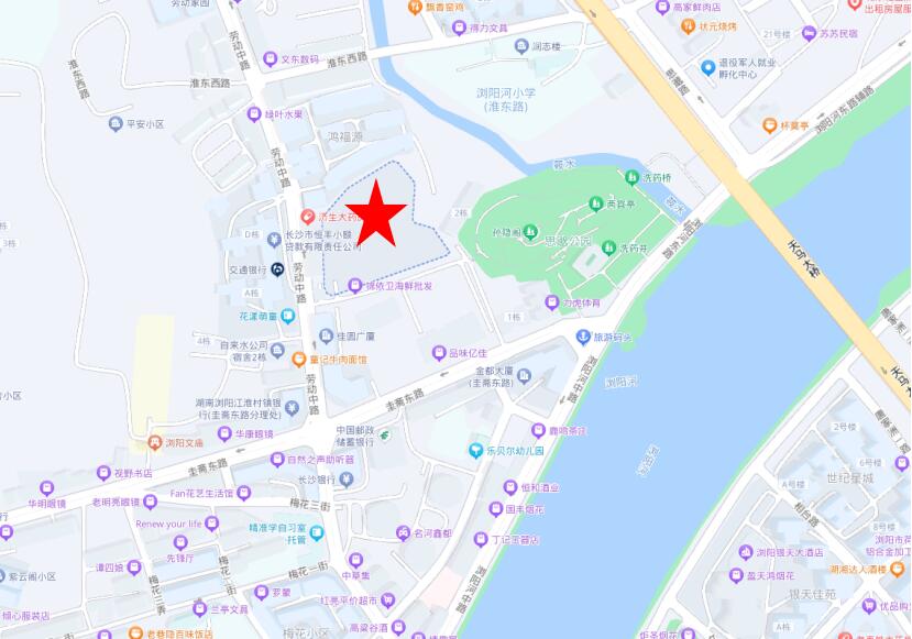二、項(xiàng)目位置描述 項(xiàng)目位于瀏陽(yáng)老城區(qū)核心地段,百年圭齋路與勞動(dòng)路的交匯處,南臨瀏陽(yáng)河和天馬山,東靠思邈公園以及瀏陽(yáng)河風(fēng)光帶,具體位置如圖所示(紅星標(biāo)注位置):