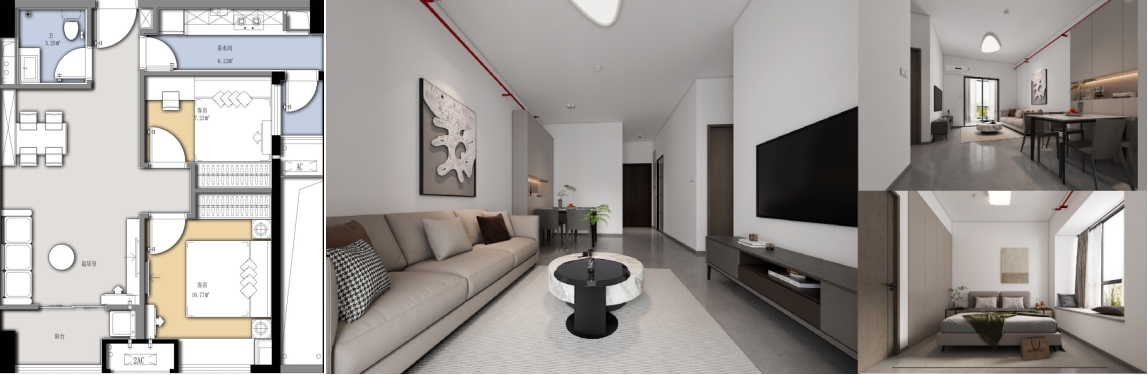 公寓類戶型圖及效果圖(套內(nèi)面積58㎡)