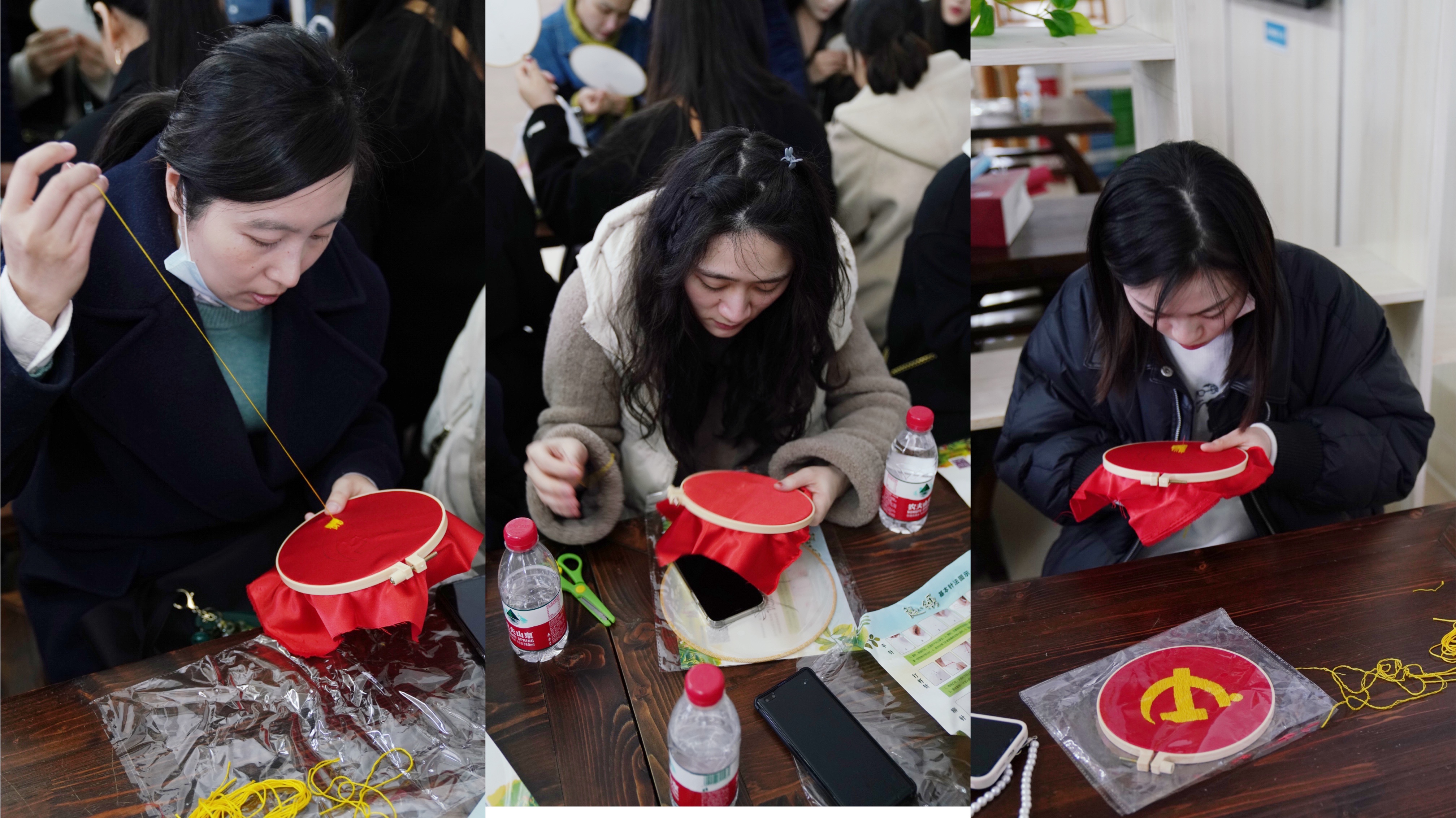 此次活動場地在湘繡發(fā)源地、有“中國湘繡之鄉(xiāng)”美稱的湖南沙坪湘繡博物館。在集中觀看了湘繡主題視頻短片《沙坪繡天下》后,大家在講解員的引領(lǐng)下參觀了博物館,在驚嘆湘繡作品傳統(tǒng)工藝之美的同時,對湘繡歷史、文化內(nèi)涵等也有了深入了解?,F(xiàn)場刺繡更是讓大家體會到了穿針引線、繪制美麗的不易與魅力,通過聆聽老師講解、請教探討繡制技巧,以巾幗匠心繪制出一個個鮮艷的黨徽、一面面精致的團扇,在繁忙的工作之余收獲了一項新技能,為生活點綴起一抹新亮色。