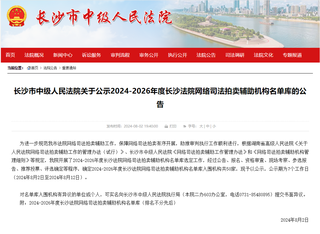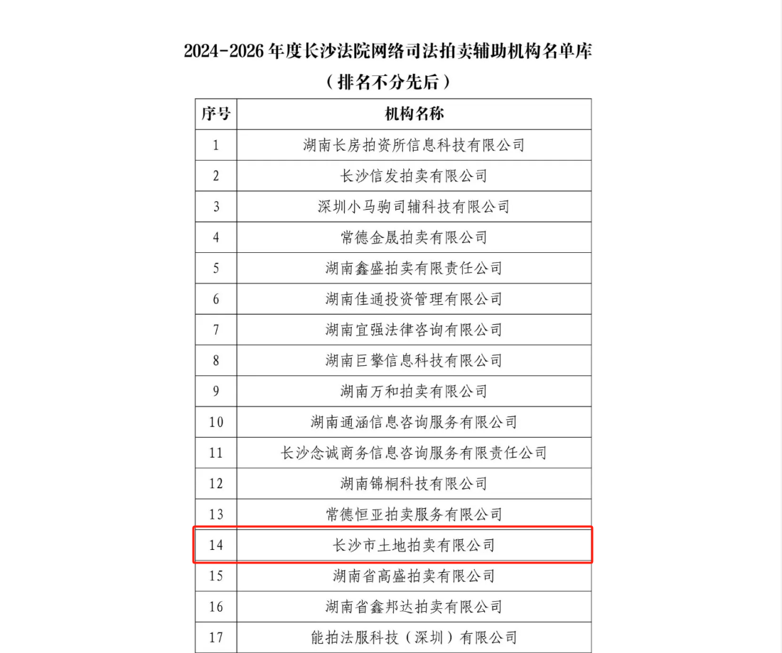 經(jīng)過資格審查、現(xiàn)場考察、參選報告、推薦投票、評選確定等程序,長沙聯(lián)交所下屬長沙市土地拍賣有限公司再次成功入圍2024-2026年度長沙法院網(wǎng)絡司法拍賣輔助機構名單庫。